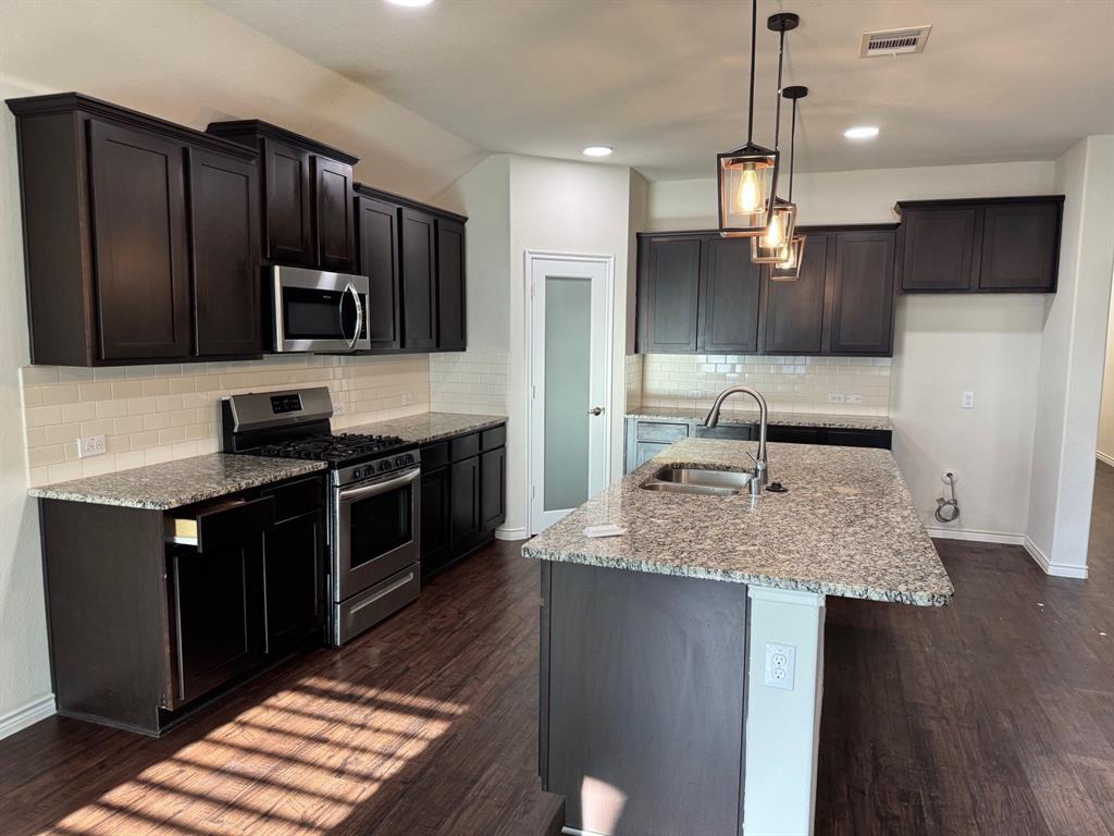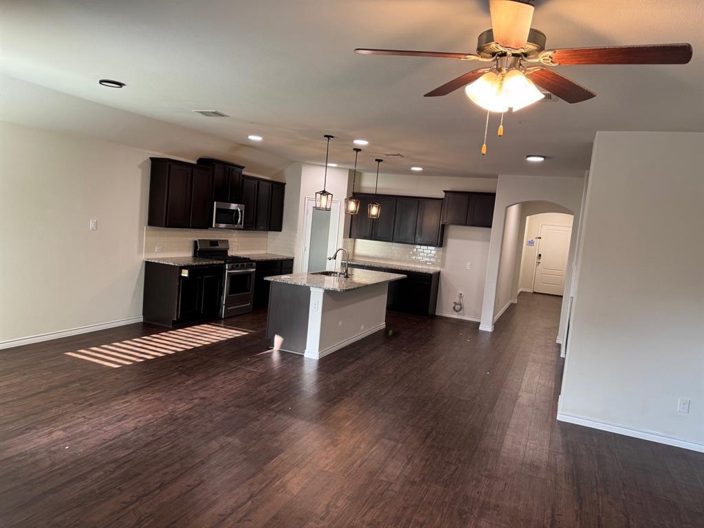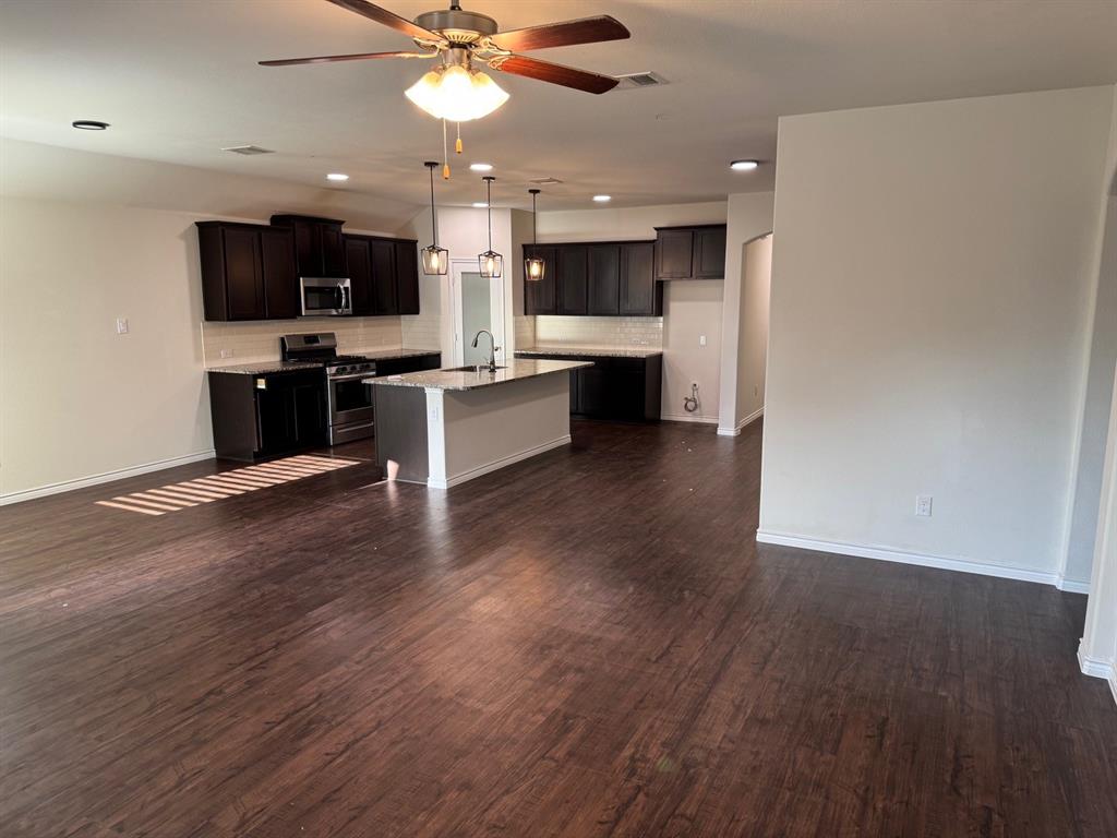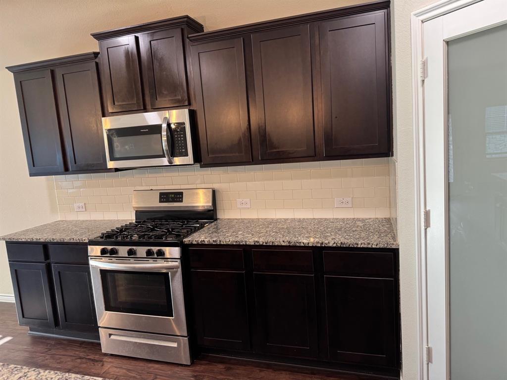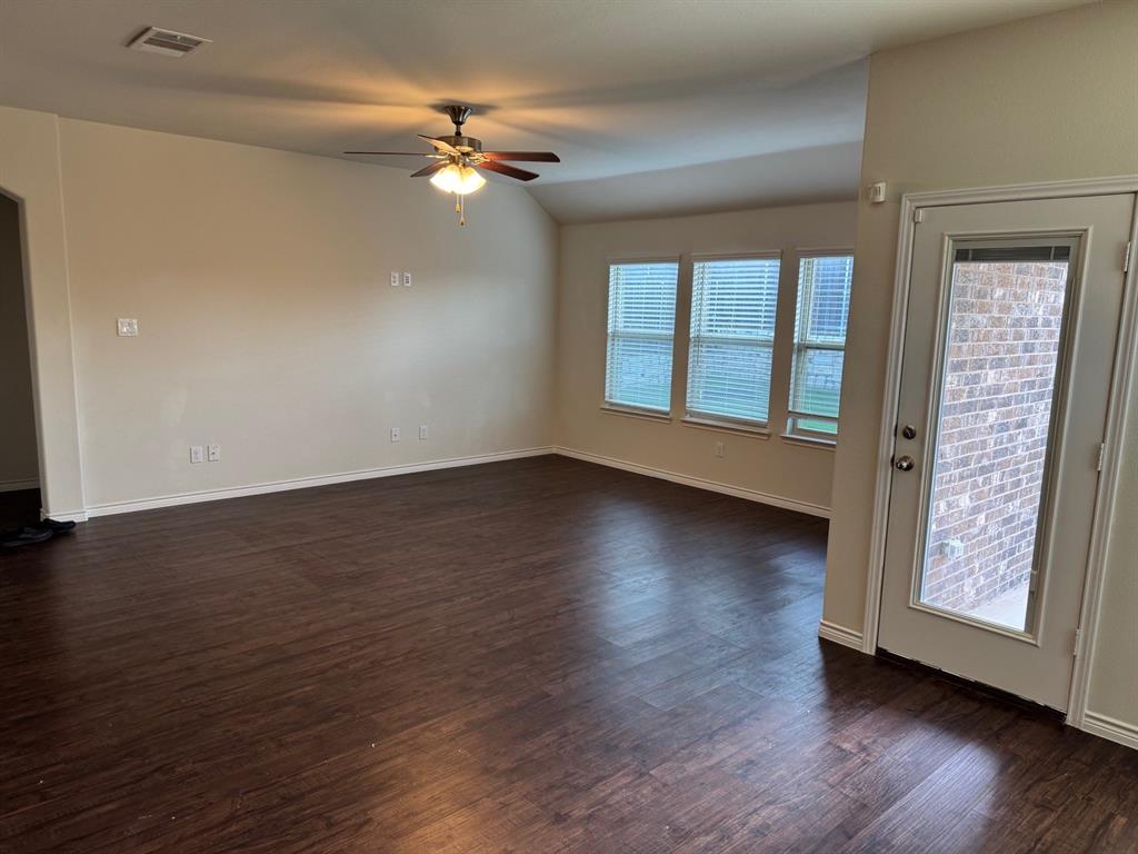 Welcome to your dream family home in Little Elm! Built in 2019, this immaculate 2,036 sq ft single-story residence offers 4 bedrooms and 2 baths of modern comfort. Step inside to an open-concept layout with durable vinyl flooring. The kitchen features granite countertops, a gas range, and smart pantry lighting. Your master suite provides a private retreat with an upgraded walk-in closet and enhanced bathroom lighting. All bedrooms include ceiling fans. This home is designed for efficiency and convenience, boasting solar panels and a new Class 4 roof (2024) for superior energy savings. It's smart home-ready with upgraded lighting, Decora switches, and exterior lighting. Outside, enjoy a generously sized backyard on a private corner lot with a stone wall fence on one side, plus a 2-car garage. Location is key! Benefit from easy lake access, nearby trails, and a community pool. Walk to the elementary school, and enjoyl access to The Cove at the Lakefront, Hydrous Wake Park, Frisco Lakes Golf Club, and daily amenities. This family-friendly neighborhood hosts summer activities while maintaining a peaceful ambiance. With Oak Point's rapid development, even more restaurants and amenities are coming soon. Don't miss this meticulously upgraded home offering the best of Little Elm!